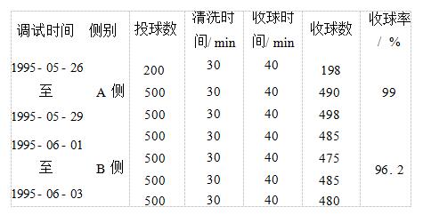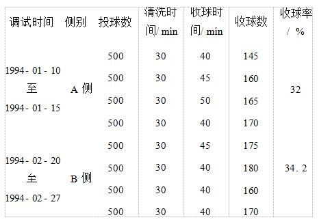 4.2收球網(wǎng)粘球主要是1號機(jī)組的凝汽器膠球清洗裝置的收球網(wǎng),特別是在收球槽局部。