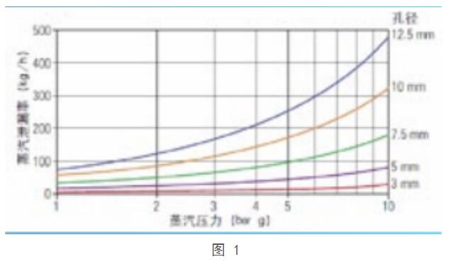 不同口徑的汽液兩相流疏水器疏水閥的小孔直徑d可以參考表1。圖1給出了不同壓力下,不同孔徑的疏水閥的蒸汽泄漏量,可以快速的查處大致的蒸汽泄漏量。