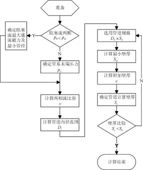將3.3.7計算出的壁厚Sc與3.3.6中選取的管道規(guī)格壁厚S0進行對比,使Sc<S0;將3.3.6中選取的管道規(guī)格內(nèi)徑與3.3.1中計算出的阻塞流小內(nèi)徑dmin進行對比,使(D0-2S0)>dmin.基于上述加熱器疏水管道選型方法,對氣液兩相流疏水器后管道選型的計算步驟進行了總結(jié),如圖4所示.