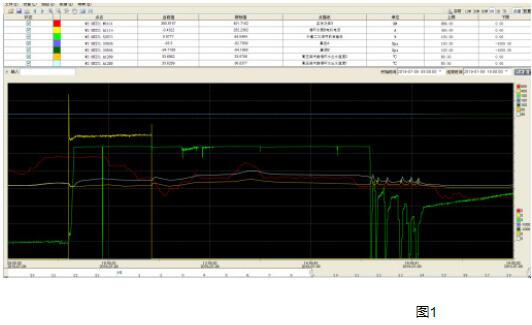 2019年07月09日10時(shí)00分,機(jī)組負(fù)荷500MW,兩機(jī)三泵(1B循泵未啟動(dòng)),凝汽器真空-92.3/-94.0KPa,凝汽器內(nèi)外圈循環(huán)水出水溫度分別為34.4/34.4℃,凝汽器外圈循環(huán)水二次濾網(wǎng)差壓為9.4KPa。啟動(dòng)1號(hào)機(jī)循環(huán)水泵B后發(fā)現(xiàn),凝汽器外圈循環(huán)水二次濾網(wǎng)差壓由9.3KPa快速上漲至64KPa。確認(rèn)外圈二次濾網(wǎng)反沖洗排污電動(dòng)門在打開狀態(tài)后,就地手動(dòng)方式反沖洗外圈二次濾網(wǎng)無(wú)明顯效果,圖1為當(dāng)時(shí)各參數(shù)變化趨勢(shì)圖。