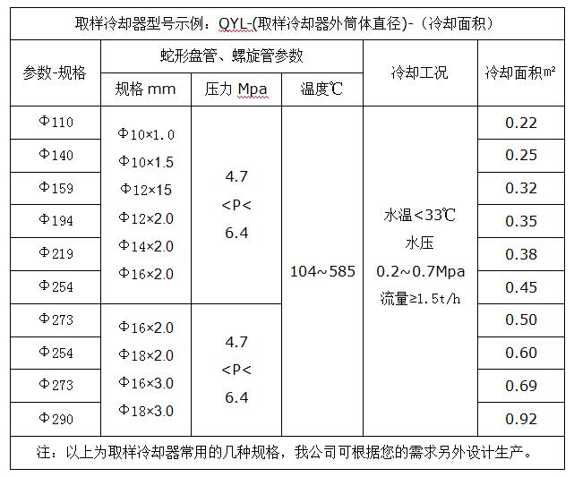 二、鍋爐取樣冷卻器規(guī)格型號: